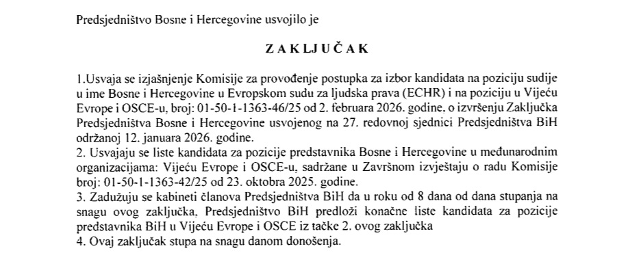 Dovođenje u pitanje vjerodostojnosti izvještaja Komisije, koje je svjesno kreirano unutar Ministarstva vanjskih poslova, otvara prostor da cijeli proces izbora bh. sudije u Strazburu bude blokiran ili poništen, čime BiH rizikuje ozbiljnu institucionalnu kompromitaciju i gubitak utjecaja u jednom od najvažnijih evropskih pravosudnih tijela. Sama odluka MVP da bez prethodne konsultacije sa Predsjedništvom pošalje prepravljeni izvještaj u Strazbur šalje signal o neusklađenosti institucija i lošoj kontroli nad administracijom, što može imati dugoročne posljedice po povjerenje međunarodnih partnera i sposobnost države da provodi obaveze iz evropskih konvencija. Za Vijeće Evrope i njegove procedure, posebno u kontekstu izbora sudije za Evropski sud za ljudska prava, ključni su transparentnost, integritet i dosljednost nacionalnih procedura. Svako odstupanje u tom smislu automatski budi sumnju u regularnost procesa i može dovesti do odbacivanja liste kandidata ili njenog vraćanja na doradu.