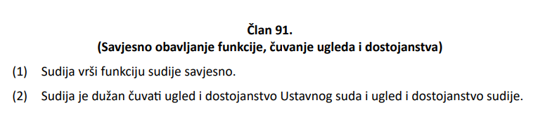 – 2. Sudija je dužan čuvati ugled i dostojanstvo Ustavnog suda i ugled i dostojanstvo sudije.