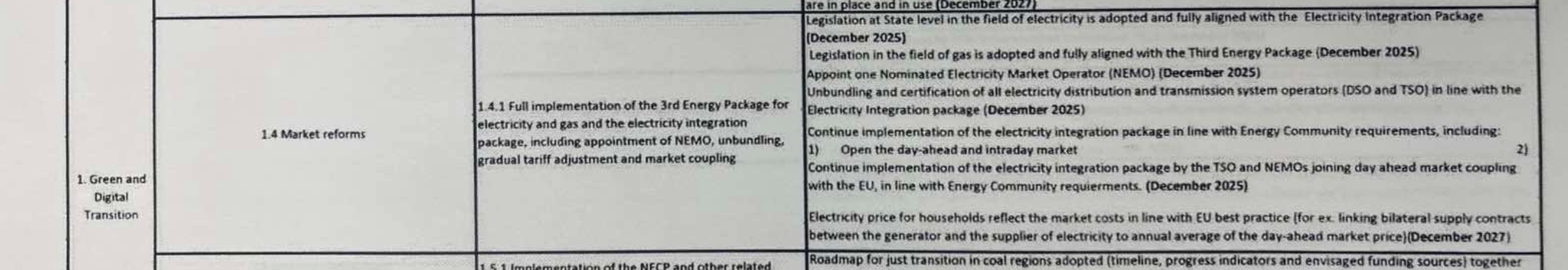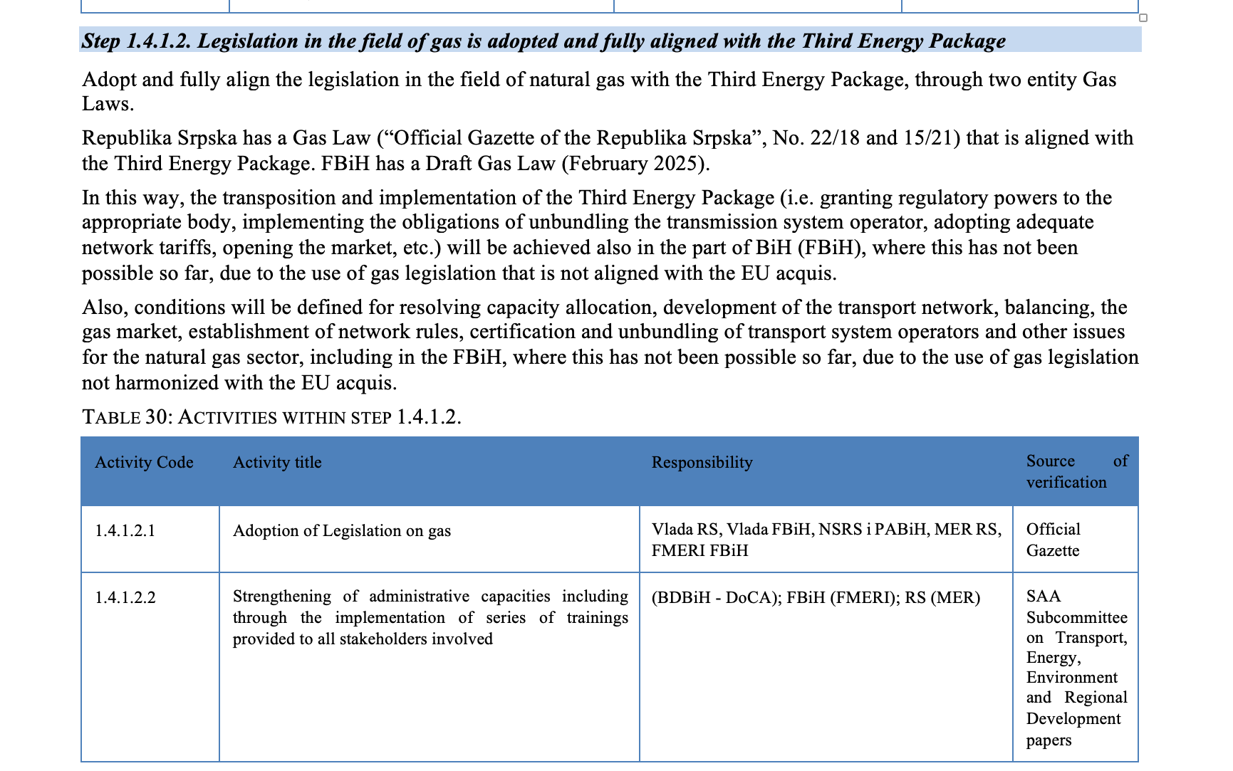 Međutim, u poglavlju 1.4.1.2. detaljno je objašnjeno šta će se raditi u oblasti energetike. tako u okviru te tabele piše da je nužno usvajanje zakonodavstva o plinu. Tabela se nalazi na početku ovog teksta.