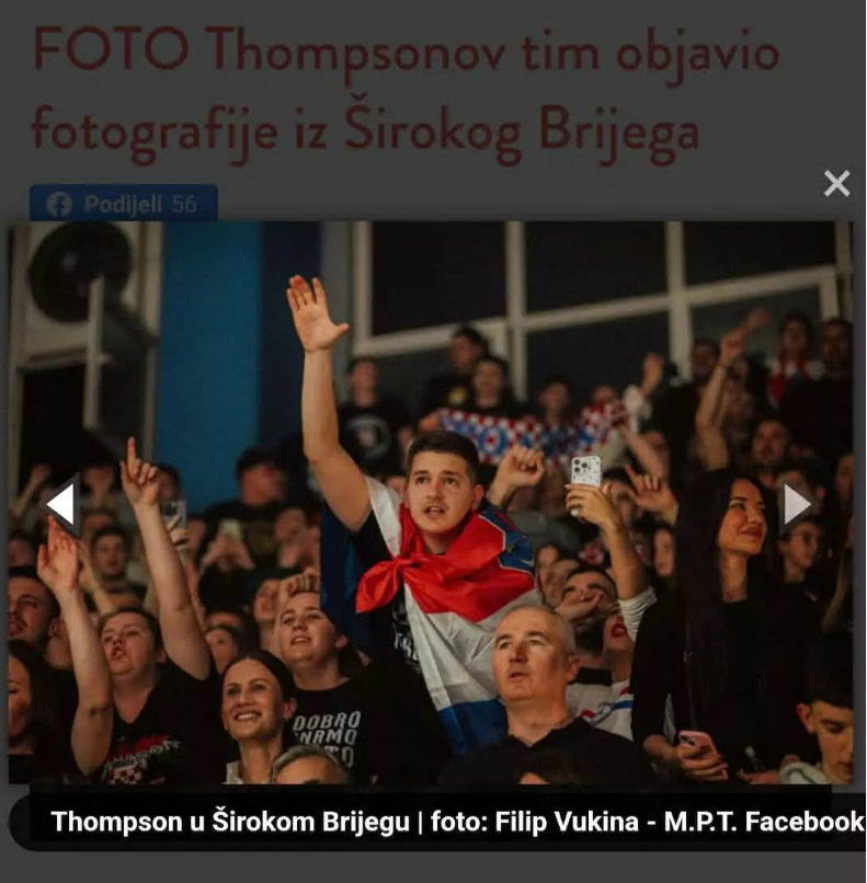 Koncert Marka Perkovića Thompsona koji je održan u Širokom Brijegu u sportskoj dvorani Pecara pratilo je veličanje ustaškog režima, kroz pjesmu i simboliku kao i gestikulacije prisutnih, režima odgovornog za stotine hiljada nevino ubijenih. Naknadno je reagirala izraelska nerezidentna ambasadorica za Bosnu i Hercegovinu Galit Peleg, koja je osudila dešavanja na koncertu.