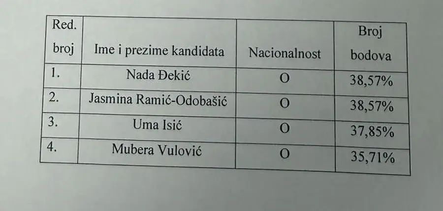 Nakon što je provedena konkursna procedura, sačinjena je lista kandidata. Prvorangirane su, sa istim brojem bodova, Jasmina Ramić-Odobašić i Nada Đekić. No, Marinko Čavara, objavio je portal Raport, odlučio je da na listi kao prvorangiranu istakne SNSD-ovu kandidatkinju Nadu Đekić kako bi se Predstavnički dom prvo o njoj izjašnjavao.